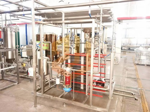 隨著啤酒行業(yè)規(guī)模不斷擴大,技術水平不斷提高,啤酒品種不斷增多,原料、能源、運輸?shù)葍r格不斷膨脹。應對市場,必須節(jié)能降耗,降低生產成本。在提高產品質量過程中,啤酒的生物穩(wěn)定性與巴式滅菌的溫度有很大的關系。我公司在吸收消化國外先進的啤酒殺菌技術基礎上研制生產了瞬時殺菌裝置。采用高效的板式換熱器實現(xiàn)啤酒與熱水的換熱,使啤酒瞬間加溫并經過恒溫殺菌后再經過冷媒介質降至原有溫度。通過瞬間加溫、保溫和降溫的過程使啤酒完成巴氏殺菌,達到殺菌25pu值,并可使啤酒中的CO2含量和啤酒口味風味保持不變。