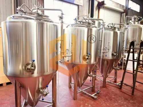 精釀啤酒設(shè)備發(fā)酵罐:啤酒發(fā)酵罐可配置200升或者400升啤酒發(fā)酵罐,整體設(shè)計(jì)采用頂部人孔設(shè)計(jì)思路,采用水封機(jī)械式排氣閥設(shè)計(jì),可自由設(shè)定壓力排出,自動排壓;溫度采用夾套降溫的方式,單罐單控,發(fā)酵溫度可自由設(shè)定溫度,自動控制;保溫采用80MM的保溫層;發(fā)酵罐配有液位裝置,可以觀察內(nèi)部液位;工作壓力2bar,成品產(chǎn)品保壓3bar72小時以上。